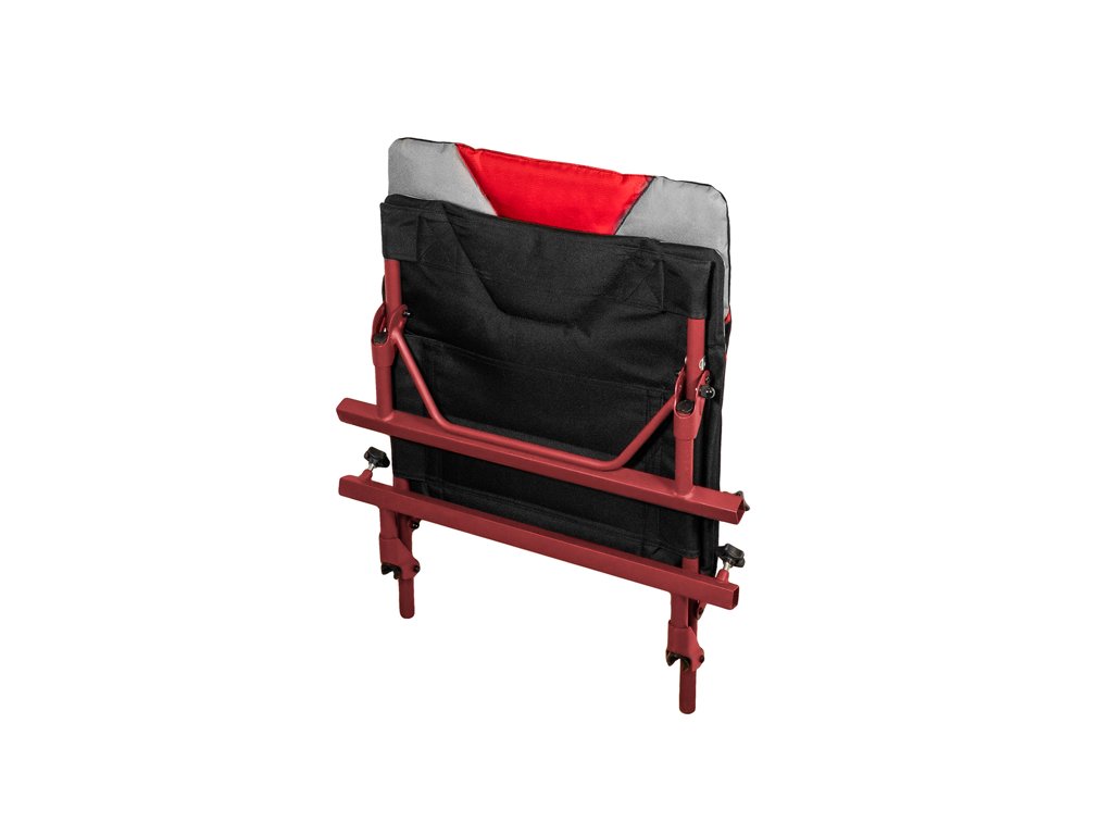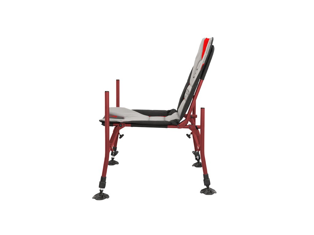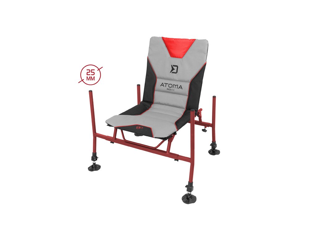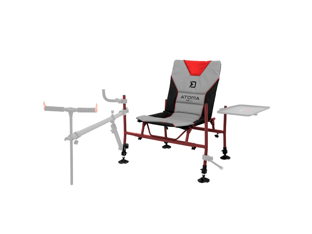 RaceBase je prémiové feederové křeslo, které upoutá pozornost i náročných příznivců této rybolovné techniky. Základ křesla tvoří extra pevná železná konstrukce, s bordó povrchovou úpravou, charakteristickou pro feederové produkty ze série ATOMA. Vzhledem ke svému provedení a použitému materiálu nebude mít problém ani s vyššími váhovými kategoriemi rybářů. Sedací a zádová část je šitá z velmi odolné látky a nese několik zajímavých ergonomických a designových prvků. Měkká výplň zaručí, že se na ní budete cítit maximálně komfortně i po delším chytání či feederových závodech. Jednotlivé nohy křesla se vkládají z boku do trubek s hranatým profilem, díky čemuž je zabráněno jakémukoliv přetočení. Navíc se dotahují šroubovým mechanismem šikmo na hranu profilu, čímž nedochází k poškození a deformací jednotlivých trubek. Přední pár nohou, ve srovnání se zadními, disponuje výrazně prodlouženými vrchními trubkami. Toto řešení není běžné, ale jedná se o absolutně funkční detail. Díky delší noze můžete na tento profil osadit více prvků a takové provedení dodává křeslu mnohem větší variabilitu. Vše budete mít zároveň po ruce. Všechny čtyři nohy jsou vysouvatelné a taktéž jsou osazeny kvalitními kloubovými patkami z pevného plastu. Díky tomu bude křeslo možné vhodně rozložit i v nerovném terénu. Patky navíc zabraňují zaboření křesla do země v případě měkčího podkladu. Při návrhu jsme mysleli i na stabilitu křesla, a proto jsme na přední pár nohou přidali zajišťovací mechanismus, který zabraňuje sklápění a následnému převrácení křesla při použití velkých a těžších feederových ramen. Maximálně pohodlné, do detailů propracované a extra stabilní - to je křeslo Delphin ATOMA RaceBase! Technické parametry: Rozměr sedáku: 50x50 cm Výška zádové opěrky: 55 cm Výška sedáku: 40-50 cm Hmotnost: 6,5 kg Přepravní rozměry: 73x60x10cm Průměr nohou: 25mm Celková výška: 95 – 105cm Šířka: 65 - 85cmDoplňkové parametry