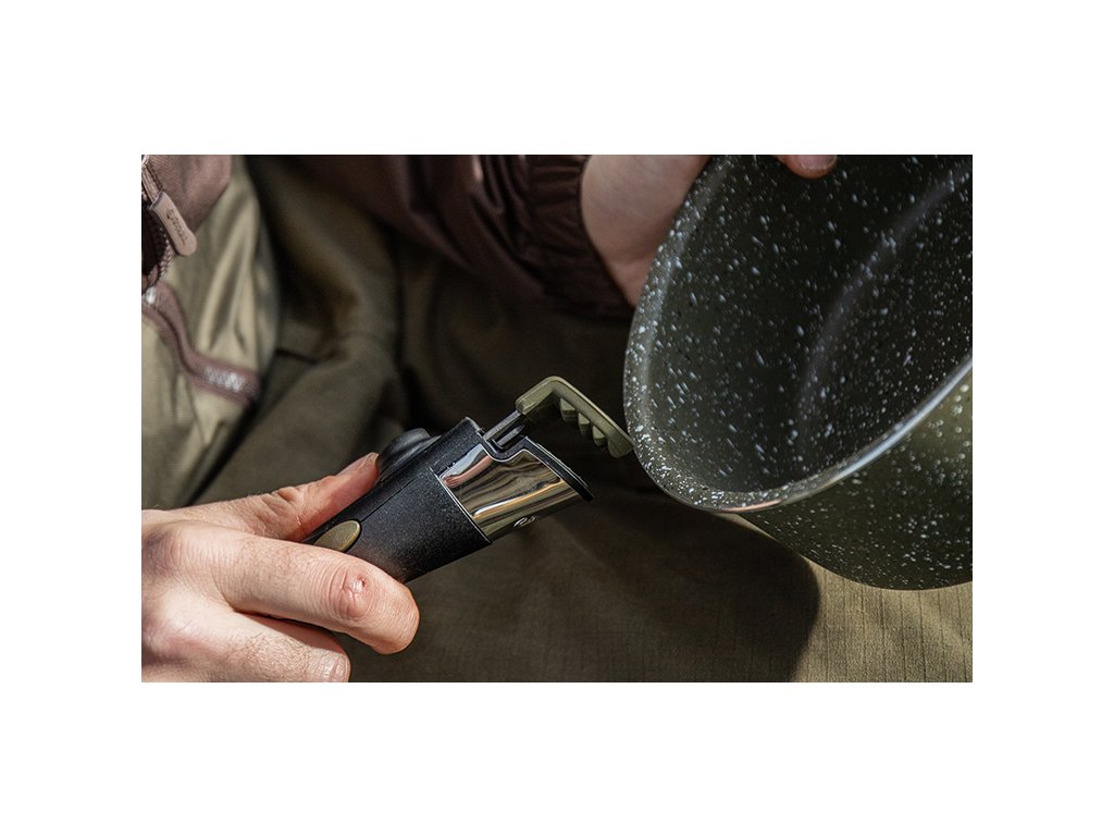 Souprava na vaření (dostupná ve 3 velikostech) Armolife Marble CookSet byla vyvinuta tak, aby byla extrémně odolná proti opotřebení. Je vyrobena z extra silného 2,5mm hliníku s nerezovou základnou a potažena dvěma vrstvami mramorového povlaku, který jí dodává profesionální vzhled a dokonale nelepivé vlastnosti. Pánve jsou navrženy pro všechny zdroje tepla, takže je využijete jak doma nebo u vody. Každá sada obsahuje hrnec, pánev a odnímatelnou rukojeť, která je kompatibilní napříč mezi sadami. Rukojeť má dvojčinnou bezpečnostní západku, která zabraňuje nechtěnému uvolnění při manipulaci s horkou pánví.